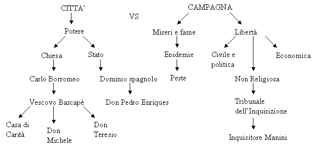 VESCOVO BASCAPE' : pupillo di Carlo Borromeo, era stato consigliere di due Papi e in corsa lui stesso per diventarlo, ma, essendo risultato sconfitto, fu mandato, anche se non fu cosa facile, a fare il vescovo nella sede lontana di Novara. Era nobile per nascita, raffinato per educazione e cultura, conoscitore del latino e dello spagnolo, brillante scrittore, esperto di diritto ecclesiastico e civile e dotato di un talenti di organizzatore non indifferente. La sua vita si intreccia con quella di Antonia a partire dal giorno in cui si reca a S. Michele per far visita alla diocesi, da lì la incontra nuovamente dopo qualche anno a Zardino, dove si era recato per lo stesso motivo. Aveva un viso grigio profondamente incavato, una barba rada, così magro e sciupato dagli anni da sembrare un fascio d'ossa, un fantasma.si recò sette mesi a Roma per la santificazione di Borromeo e lì, ormai vecchio, aveva finalmente aperto gli occhi nei confronti della Chiesa: quella Chiesa che lui e Borromeo avevano voluto fondare sulla fede, sulle opere di carità di devozione e pietà, si era nel giro di decenni come bloccata, era rimasta agli anni della Babilonia delle scritture e una fitta rete di intrighi, imbrogli, traffici e favoritismi regolava l'intera struttura. Da quel momento decide di abbandonare Roma, tornare a Novara e abbandonare il suo lavoro, lavarsene le mani di tutto ciò che esso comportava, come il dovere di presenziare ai processi, e scappare. Così fece.