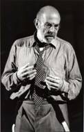 (subito, facendosi voce dello sdegno crescente dei suoi Attori) Ma io la prego di credere che la professione del comico, caro signore, è una nobilissima professione! Se oggi come oggi i signori commediografi nuovi ci dànno da rappresentare stolide commedie e fantocci invece di uomini, sappia che è nostro vanto aver dato vita - qua su queste tavole - a opere immortali! |