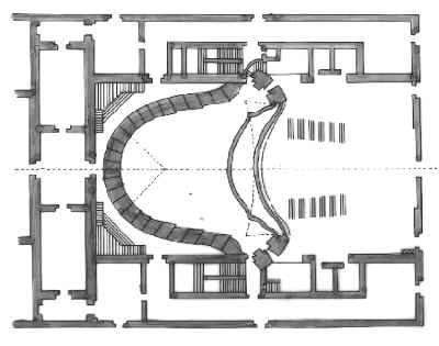 Pianta del Teatro Filarmonico di Verona di Francesco Bibbiena, con la disposizione dei palchetti 'a campana'.