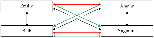 Ha una sorella, Amalia, zitella, votata interamente a lui (non esce mai di casa, ecc., il contrario di Angiolina). Amalia è segretamente innamorata di un amico di Emilio, il pittore Balli (suo opposto, come Angiolina), un pittore di scarso valore ma molto apprezzato per le sue avventure, si disinteressa di tutti.