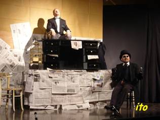 Una scena dell'interpretazione teatrale "La patente"dove si vedono: