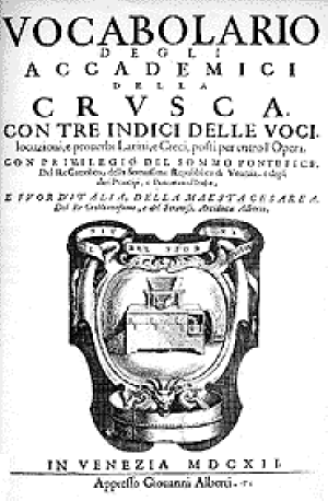 Nel corso del secolo l'accademia curò la pubblicazione di tre edizioni del Vocabolario degli Accademia della Crusca (nel 1612,1623 e 1691), che rimase un punto di riferimento fondamentale per i secoli successivi. Un discorso a parte meritano infine le accademie scientifiche, tra le quali occorre ricordare almeno quella dei Lincei (fondata a Roma nel 1603 e attiva fino al 1630).