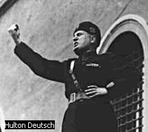Benito Mussolini (Dovia di Predappio, Forlì 1883 - Giulino di Mezzegra, Como 1945), uomo politico, fondatore e leader del fascismo italiano. Figlio di un fabbro, si avvicinò da giovanissimo al socialismo, anche per l'influenza del padre. Conseguito il diploma di maestro nel 1901, fuggì in Svizzera l'anno successivo per sottrarsi al servizio militare e vi rimase fino al 1904, segnalandosi come agitatore socialista e anticlericale. Rientrò in Italia, dove esercitò l'insegnamento fino a quando, nel 1909, si trasferì a Trento avviandosi all'attività giornalistica (fu direttore del settimanale 'L'avvenire del lavoratore'). Tornato a Forlì, vi diresse la federazione socialista provinciale e il settimanale 'La lotta di classe'. Nel 1911 fu tra i capi delle violente proteste popolari condotte in Romagna contro la guerra di Libia e venne condannato a cinque mesi di carcere.