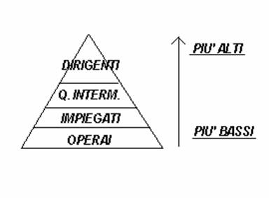 Si potrebbe dire che a gestire i rapporti tra i soggetti del lavoro c'è una sorta di piramide di potere (gerarchica), proprio come nelle grandi civiltà del passato: alla base di questa piramide troviamo gli operai, al secondo livello gli impiegati, al terzo abbiamo i quadri intermedi, ed infine in cima alla piramide c'è il dirigente.