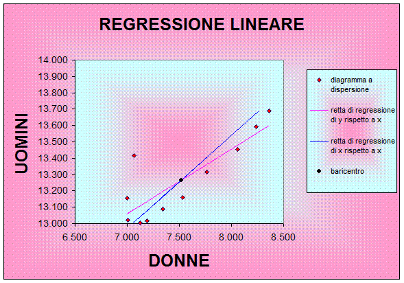 Ho analizzato questi dati con lo studio della regressione, per determinare una funzione matematica, che esprima la relazione tra le variabili, per vedere come un carattere influenza l’altro; soprattutto per capire se l’occupazione femminile ha frenato (o svantaggiato) l’occupazione maschile, sottraendo posti di lavoro.