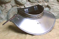 Elmo conico; dopo il 1350 l'elmo fu usato principalmente nei tornei. Questo elmo veniva indossato sopra un bacinetto, costituendo un notevole peso sulle spalle del cavaliere.