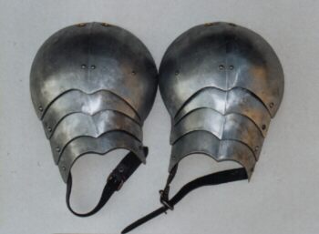 Grosse piastre metalliche che proteggono le spalle. Nelle armature complete le protezioni del braccio e gli spallacci sono 'fuse' in un unico componente, formato appunto da spallacci e copribraccio collegati da piastre metalliche rivettate e snodabili per agevolare i movimenti. Il gomito e l'incavo di questo sono celati dalla cubitiera, che funge anche da cerniera per permettere il movimento del braccio. La parte a protezione dell'avambraccio è chiuso tramite cinghie o ganci.