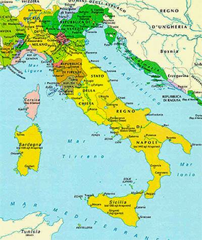Come è evidente dalla cartina, i maggiori stati regionali della penisola, a partire dalla fine del Trecento, sono:
