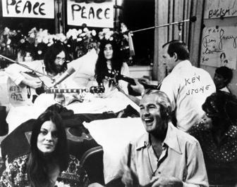Sono ormai passate alla storia le sue più o meno bizzarre manifestazioni pacifiste (ricordate i "Bed In"?) "inondate" da macchine da presa e provocatori dibattiti politici.