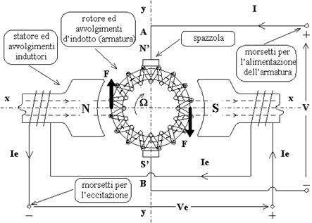 Come si nota dall'equazione (*), quando la velocità è nulla scompare la forza controelettromotrice E; di conseguenza come si nota dall'equazione (**), la tensione applicata al circuito di indotto è equilibrata dalla sola caduta di tensione sull'avvolgimento di indotto.