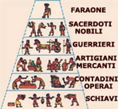 L'immagine della piramide è stata spesso usata dagli storici per rappresentare le gerarchie della società egiziana. Ecco come essa può essere visualizzata, partendo dal suo vertice, il faraone, fino ad arrivare alla base, costituita dalla massa contadina.