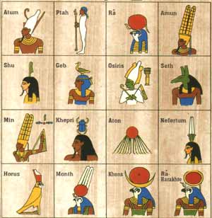 Alcune divinità, come Horus, Iside, Osiride, Amon-Ra (un dio potentissimo che aveva come simbolo il disco del Sole), erano adorate in tutto il paese; altre, meno potenti, avevano culti ciascuna nella propria città o nel proprio villaggio.