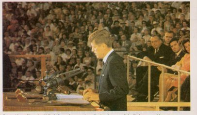 (nella foto: il candidato J. F. Kennedy durante un discorso afferma la sua condidatura alla prossime presidenziali)
