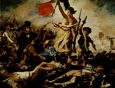 Per Delocroix, artista romantico, la libertà è associata all'indipendenza nazionale relegandole un valore di patriottismo e di unità sociale, rappresentata non a caso dal tricolore francese tenuto con orgoglio dalla mano della Marianne, fanciulla simbolo della Rivoluzione Francese, una raffigurazione più allegorica che reale e dall'unione delle varie classi sociali nella lotta comune: ci sono infatti il popolano, il militare e il borghese, probabilmente un autoritratto dell'autore, e anche un bambino.