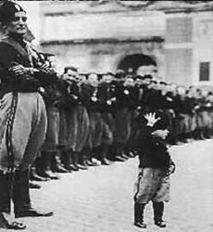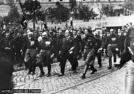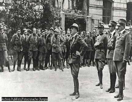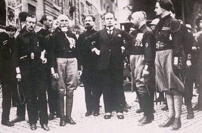 All'estrema destra dello schieramento politico ital (dai 'Fasci di Combattimento' fondati nel marzo del 1919), guidato dall'ex-socialista rivoluzionario Benito Mussolini