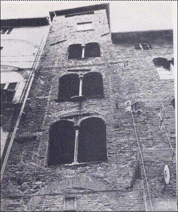 In prevalenza, lungo il reticolo viario romano, l'abitato di questi secoli risulta dall'affian- camento di tante unità base: quelle case-torri che sono comuni a tante città della Toscana. Sono realizzate su due o tre muri portanti: la muratura è varia, in pietra o mattoni, oppure in pietra nella parte