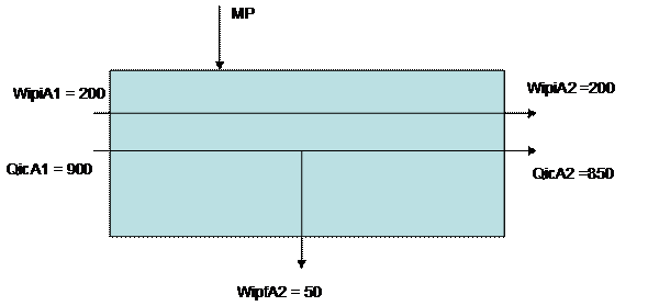 A questo punto, si può procedere alla valorizzazione dei flussi del Wip iniziale di A (WipiA) e della Quantità iniziata e completata di A nel periodo nel primo reparto (QicA).