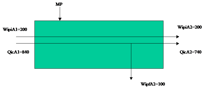 Entrambi i reparti produttivi sono caratterizzati da un assorbimento uniforme delle risorse di conversione. I prodotti terminati nel reparto produttivo 1 vengono immediatamente trasferiti al reparto produttivo 2. In entrambi i reparti viene lavorato il solo prodotto A.