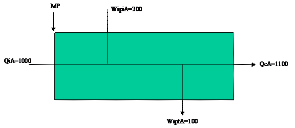 QcA1= Quantità completata di A nel periodo nel primo reparto e trasferita al secondo