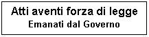 Le fonti primarie sono le leggi ordinarie che comprendono sia le leggi statali emanate dal parlamento, sia le leggi regionali emanate dalle regioni. Hanno uguale potere alle leggi ordinarie (fonti primarie) gli atti aventi forza di legge emanati dal Governo: si tratta dei decreti legge e dei decreti legislativi.
