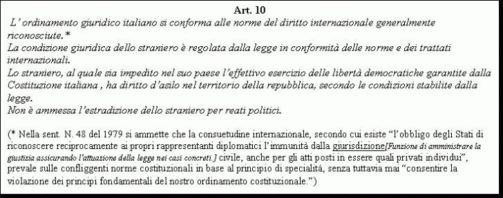 Il diritto internazionale generale di natura consuetudinaria (Art. 10 Cost.)
