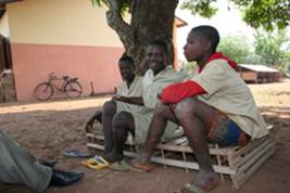 "Siamo stati solo 8 mesi in Nigeria. - esordisce Hyacinthe - Chi ci ha portato via da casa è stato il marito della nostra zia (siamo tutti parenti), con una moto. Lavoravamo tutto il giorno, dalle 5 del mattino alle sette della sera, niente era bello, ma niente proprio..avevamo sempre fame..mangiavamo solo un unico cibo sempre quello: mais, a volte col peperoncino. La sera, quando andavamo a casa, avevamo sempre sonno, ci lavavamo e ci mettevamo a dormire, solo la domenica non lavoravamo. Sono passati 3 anni da allora, ma non dimenticherò mai; quando siamo tornati a Zakpota ero felicissimo. Ho visto i miei genitori che non sapevano nulla, non erano informati e non volevano credere alle nostre parole, dicevano che non era vero, capisci? Non accettavano, ma piangevano, prima sommessamente, poi piangevamo tutti, io raccontavo e piangevo, si piangevo; eravamo così felici che ci abbracciavamo tutti quel giorno, non lo scorderò più! Da grande voglio fare il professore, non so se ci riuscirò". " Anch'io voglio fare il professore, interviene Ernest, lavorerò duro per riuscirci." "No, io voglio fare il medico, afferma Bascuss, curare le persone che stanno male e poi fare teatro; mi piacerebbe vedere al televisione, non l'ho mai vista, la gente dice che ci sono un sacco di cose belle da vedere. E poi mi piace fare teatro, qui abbiamo un grande maestro di teatro, si chiama Renè." "Io, invece, voglio guidare una moto, grida Hiacinthe, ma non ce l'ho e così gioco a calcio, sono bravo a calcio." " A me, invece, piace la bicicletta, conclude Ernest, quello che vorrei è una bicicletta!"
