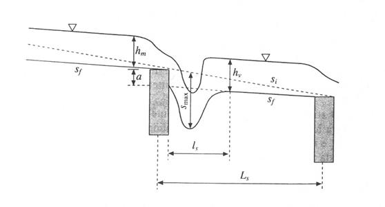 Figura 1 1 2 Schema del fenomeno di scavo fra due soglie di fondo