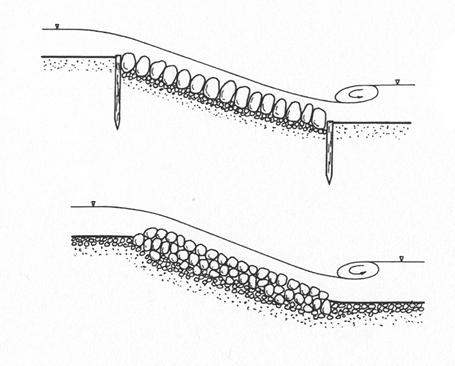 Si tratta di opere di modesta altezza, in genere non superiore ai 2-3m, costituite da una scogliera con massi di grossa pezzatura.