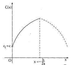 La funzione di secondo grado è rappresentata, nel primo caso, da una parabola crescente con la concavità rivolta verso l'alto, in quanto a > 0, mentre nel secondo caso è rappresentata da un arco di parabola crescente con la concavità rivolta verso il basso, in quanto a < 0; alla stessa conclusione sull'andamento crescente della funzione si giunge calcolando la derivata prima che è C'(x) = 2ax + b e che risulta sempre positiva, se per ipotesi a > 0 e b 0 (funzione crescente) e che risulta positiva per x -b/2a , se a < 0 e b > 0 (funzione crescente); inoltre la derivata seconda è C''(x) = 2a e risulta 2a sempre positiva se a > 0 (concavità rivolta verso l'alto), mentre sempre negativa se a < 0 (concavità rivolta verso il basso).