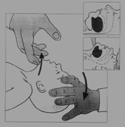 Nel paziente incosciente a causa del rilasciamento muscolare la lingua tende a spostarsi posteriormente ostruendo le vie aeree a livello faringeo. Occorre dunque sollevare il mento con una o due dita di una mano, e spingere indietro la testa appoggiando l'altra mano sulla fronte e facendo perno sulla nuca (fig.1). In caso di trauma è possibile anche eseguire la manovra di sublussazione della mandibola. La cannula faringea può facilitare il mantenimento della pervietà delle vie aeree.