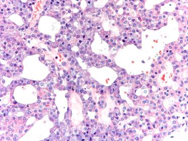 Un aspetto diagnostico importante è dato dal fatto che il carcinoma acinico presenta le cellule a secrezione sierosa, simili alle cellule luminali degli acini parotidei (come si può osservare nell immagine sottostante .