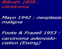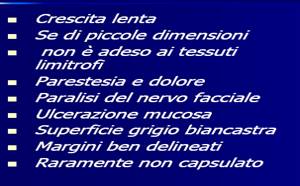 E' un tumore che interessa per lo più le salivari minori e meno le salivari maggiori. Infatti a livello del palato è opportuno andare cauti perché sappiamo che può trattarsi di una malignità. Bisogna prestare attenzione in quanto anche il citologico può dare anche falsi negativi perché comunque vi è un certo margine d'errore. E' possibile attuare in campo operatorio un'intraoperatoria se ci troviamo di fronte ad un'incognita circa il comportamento del tumore(se benigno o maligno .