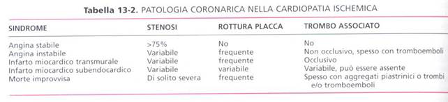 Più del 90% dei pazienti con CI hanno lesioni aterosclerotiche coronariche stenosanti in stadio avanzato, definite ostruzioni stabili; dato che il flusso è insufficiente quando l'occlusione supera il 90% del lume, la CI è caratterizzata da modificazioni repentine della placca aterosclerotica, legate a fissurazione o ulcerazione, assottigliamento della capsula e rottura; queste condizioni determinano attivazione della coagulazione che determina la formazione di un trombo che può occludere il lume della coronaria ; l'ateroma, inoltre, può andare incontro a emorragie interne, con il risultato di un aumento di volume della placca. Il problema principale, è, fondamentalmente, legato alla velocità di formazione delle placche e delle ostruzioni, perché occlusioni severe, ma lente, fanno sì che si sviluppino circoli collaterali.