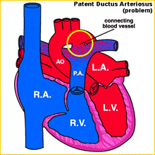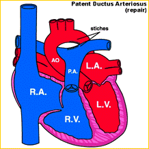 Ha un'incidenza del 10 - 15% delle cardiopatie congenite ed è caratterizzata dalla mancata chiusura alla nascita del dotto arterioso che mette in comunicazione l'aorta e l'arteria polmonare con conseguente iperafflusso polmonare. Il trattamento, prima affidato esclusivamente alla chirurgia, oggi è anche appannaggio della cardiologia interventistica con il posizionamento di devices che occludono il dotto ( spirali per i dotti di diametro inferiore a 2 mm., devices "Amplatzer" ).