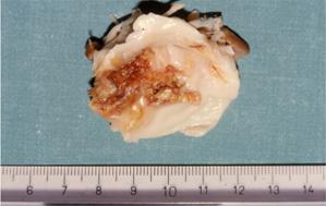 a) Nella valvulopatia reumatica la deformazione valvolare è patognomonica: le cuspidi appaiono ispessite e le commissure fuse per fibrosi post-infiammatoria. Sono altresì frequenti le deposizioni calcifiche secondarie.