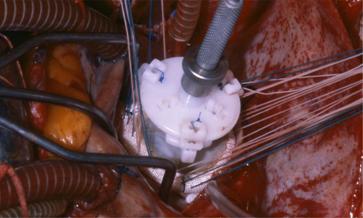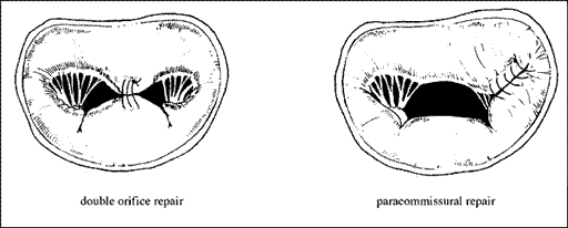 Tipicamente secondaria a malattia reumatica, la fusione delle commissure determina una ridotta escursione dei lembi valvolari ed il classico intervento conservativo in questo caso consiste nella commissurolisi o commissurotomia, che permette di allargare notevolmente lfarea funzionale della valvola e mobilizzarne i lembi. Tale procedura viene eseguita con la punta del bisturi, seguendo la linea determinata dalla fusione commisurale ed iniziando dalla parte più vicina allfanulus.