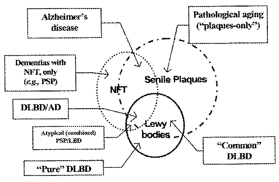 L'aspetto neuropatologico può essere importante per la diagnosi circostanziale di queste demenze ma allo stesso tempo può risultare poco definibile perché in uno stesso cervello ci sono molte sovrapposizioni tra i reperti: placche senili, corpi di Lewy, degenerazione neurofibrillare, ecc.