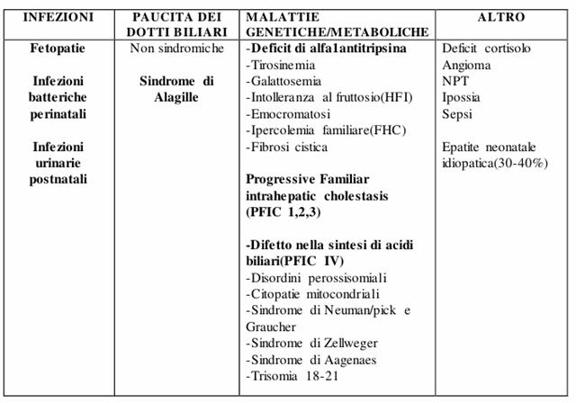 Fino ad una quarantina di anni fa tra le cause di colestasi neonatale venivano annoverate forme virali, l'atresia delle vie biliari e poi esisteva una forma denominata "epatite neonatale" che rappresentava un grande calderone in cui venivano riunite una serie di epatopatie ad impronta colestasica ad incerta eziologia.