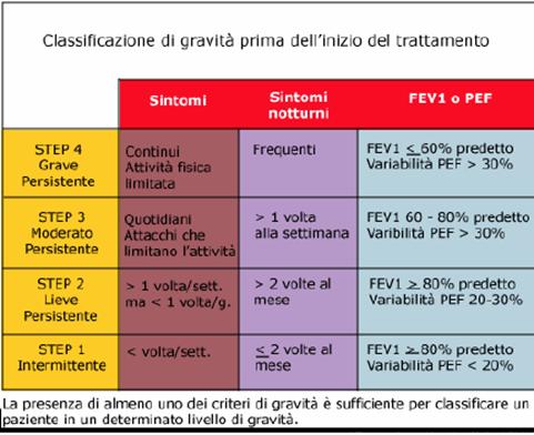 Diagnosi: la diagnosi di asma è soprattutto clinica, suggerita da una storia di episodi ricorrenti di respiro sibilante, tosse e dispnea e avvalorata da una storia personale o familiare di malattia atopica (eczema, rinite o congiuntivite allergica, asma). Nel bambino in età prescolare il sintomo principale può essere rappresentato dalla sola tosse notturna.