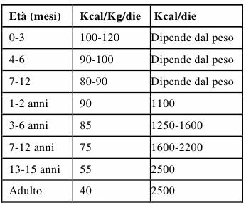 varia a seconda dell'età, infatti nel lattante il fabbisogno è più alto, mentre