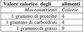 quota di calorie da introdurre nelle 24 ore. Il quoziente energetico tende a