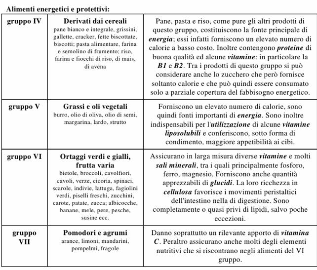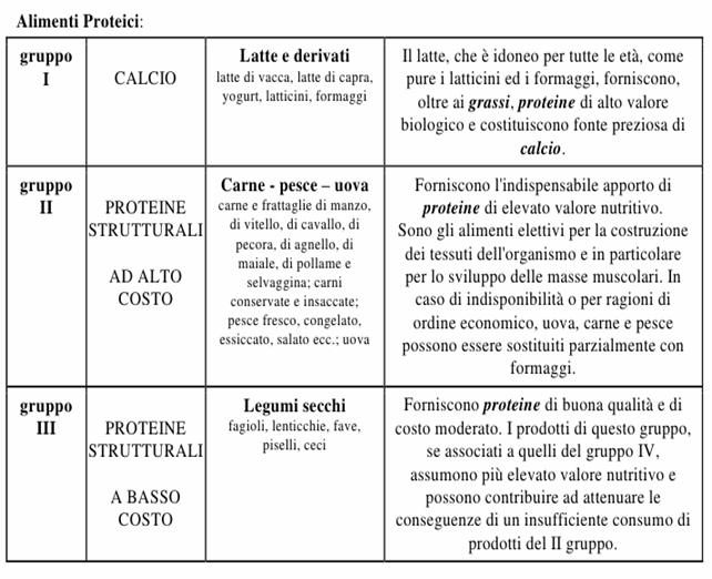 L' Istituto Nazionale della Nutrizione ha classificato gli alimenti in gruppi, tutti nutrizionalmente abbastanza omogenei, per cui all'interno di ogni gruppo esiste l'intercambiabilità e l'equivalenza.