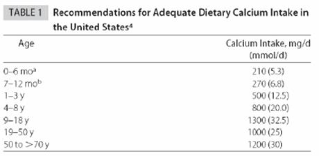 Ciò rappresenta un problema in quanto è segnalato da molti studi che, soprattutto i bambini in età adolescenziale (età in cui si ha il picco di massa ossea), non assumono la quota di calcio raccomandata, gli introiti documentati nei ragazzi in età puberale hanno una media di 700-1000 mg/die, minori rispetto al target richiesto.