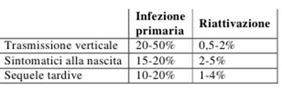 Trasmissione e conseguenze: la modalità di contagio verticale può essere sia transplacentare (che è però meno frequente, e comunque nella seconda metà della gravidanza) che connatale (pari rischio tra parto cesareo e naturale); l'allattamento non è particolarmente a rischio.