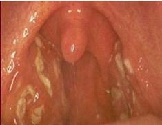 La patina biancastra delle infezioni micotiche da candida albicans.