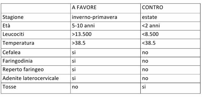Diagnosi: La diagnosi differenziale tra una faringo-tonsillite di natura virale e una di natura streptococcica è molto importante, soprattutto per le problematiche legate alle complicanze di quest'ultima,ed in particolare per la prevenzione della malattia reumatica, della glomerulonefrite e dell'eritema nodoso.