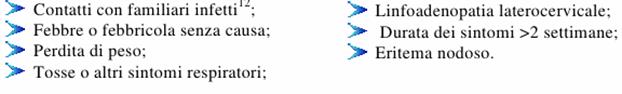 Bambini con segni radiografici e/o clinici suggestivi di TBC;