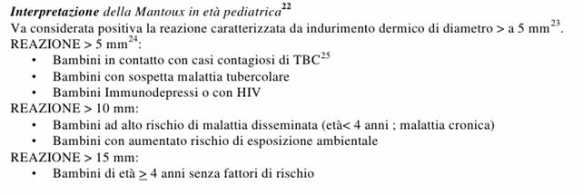 Neonati e bambini di età< 5anni, con Mantoux negativa, conviventi o aventi contatti stretti con persone affette da TBC in fase contagiosa qualora persista il rischio di contagio;