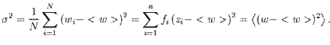 La sua radice s s è la deviazione standard o scarto quadratico medio. Questo nome indica l'operazione per calcolarla: lo scarto dalla media è la distanza tra il dato e la media | wi - < w > |; lo scarto quadratico è il