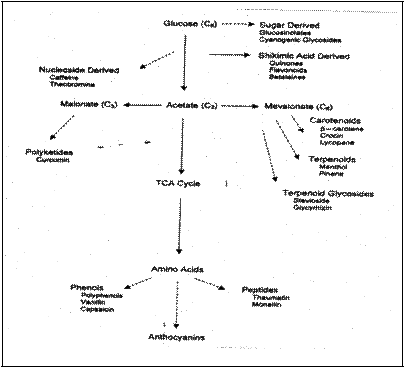 Figura 1: Relazioni tra le vie metaboliche primarie e secondarie nelle piante (da Collin, 2001)